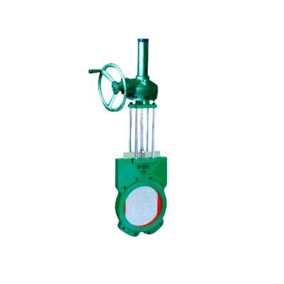 Z573X-6、Z573X-10 型铸铁锥齿轮传动对夹式浆液阀:锥齿轮传动、对夹式连接形式,明杆平行式刚性单闸板,阀座密封面材料为合成橡胶或聚四氟乙烯,公称压力 PN6~PN10,阀体材料为灰铸铁的平板闸阀(浆液阀)。