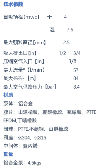MORAK系列气动隔膜泵具有以下特征: