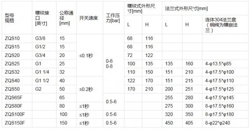注解:1、直动膜片型:DN10~DN50,先导膜片式:DN65~DN150,先导膜片型必须潜入水下使用;