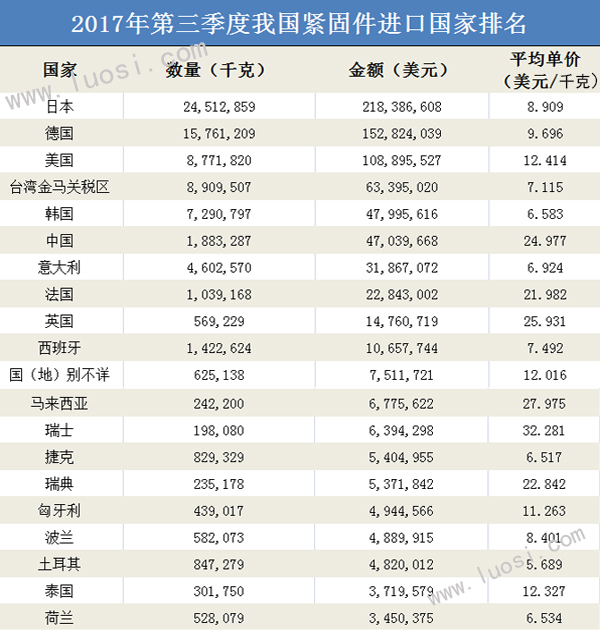 根据中国海关数据统计,2017年第三季度我国紧固件进出口...