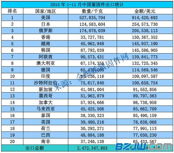今年1月份我国紧固件进出口金额达6.39亿美元