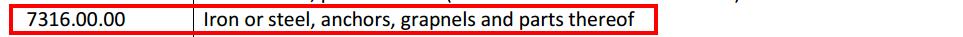 7316.00.00 钢制或铁制,锚栓,抓钩,零部件