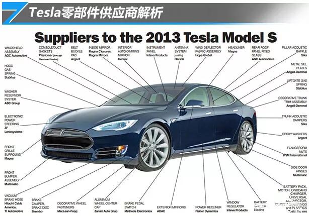 现在让我们看看特斯拉零部件都来自哪些地方?