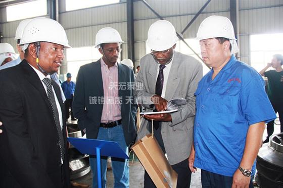 苏丹共和国国务部长一行听取天宏泵业负责人的介绍