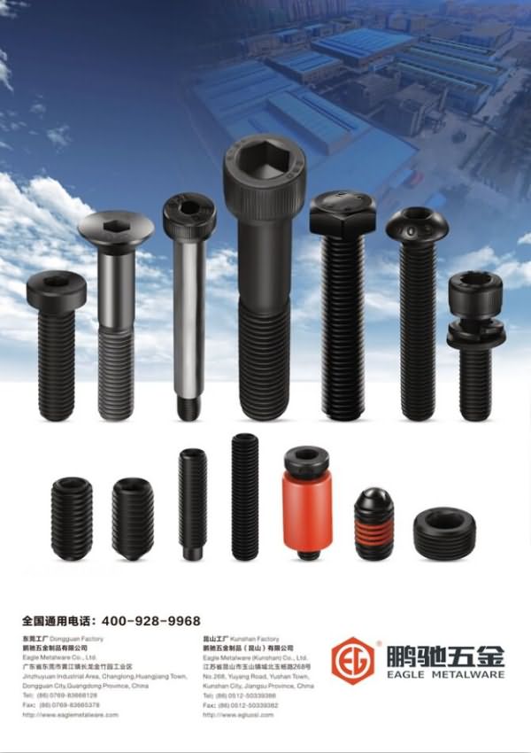 鹏驰五金在广东东莞与江苏昆山设立两大生产基地,占地面积130,000多平方米,拥有数百套世界先进水平的全套紧固件生产设备,***的品质检测设备,运用先进的ERP系统进行管理。公司通过ISO 9001:2008质量管理体系认证和ISO/TS 16949:2009技术规范管理体系认证、ISO 14001环境管理体系认证,作为全面质量管理体系运行的基础。导入并运用精益的生产管理模式提升公司的效率和产品品质的持续改善。产品优质稳定、品质定位卓越。产品广泛应用于高铁、汽车、机械、模具、电子、军事及建筑等领域,产品行销全国,远销欧美、日本及东南亚。
