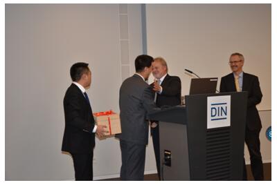 中国代表团长向DIN100周年的庆典活动赠送礼品