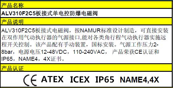 ACHEM两位五通两位三通板式防爆电磁阀ALV310F3C5