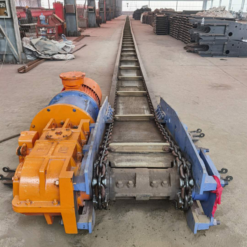 槽、链条和刮板等件组成。机尾部是供刮板链返回的装置。重型刮板输送机的机尾与机头一样,也设有动力传动装置,从安设的位置来区分叫上机头与下机头。