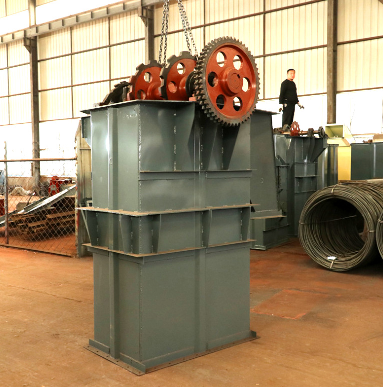 裕恒斗式提升机从牵引构件、输送量、提升高度、使用寿命等方面有较大发展。大型斗式提升机的牵引构件,多趋向于采用胶带,认为胶带好,而且有利于提高提升速度(可达3.5m/s),自重轻,运转平稳。国内曾设计斗宽为0.8m,提升速度为1.55m/s,   大提升高度为30m、输送能力达200—220t/h的胶带离心斗式提升机。可用于闭路粉磨系统提升生料(或水泥)。