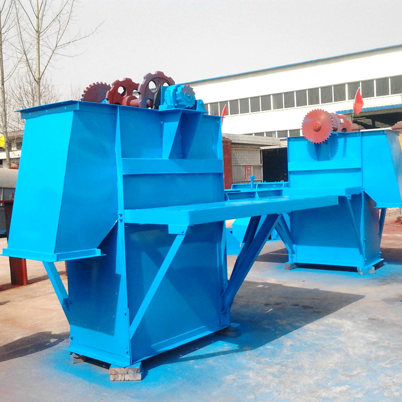 和头轮相连的驱动装置连续运转,为提升机获得足够提升物料的动力。斗式提升机会设置张紧装置,来保障牵引构建能够保持足够和恒定的张紧力,来确保提升机能够正常的运转。