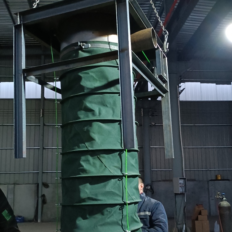 散装汽画开到指定位置,使其罐上的进料口为下料头的正下方。开启升降机构将下料头降下,至汽车的下料口后由松绳开关机构自动切断电源