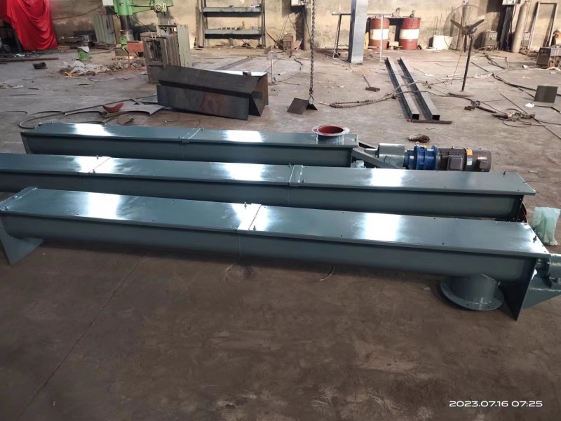 裕恒螺旋输送机的工作原理是旋转的螺旋叶片将物料推移而进行螺旋输送机输送,使物料不与螺旋输送机叶片一起旋转的力是物料自身重量和螺旋输送机机壳对物料的摩擦阻力。裕恒螺旋输送机旋转轴上焊的螺旋叶片,叶片的面型根据输送物料的不同有实体面型、带式面型、叶片面型等型式。螺旋输送机的螺旋轴在物料运动方向的终端有止推轴承以随物料给螺旋的轴向反力,在机长较长时,应加中间吊挂轴承。