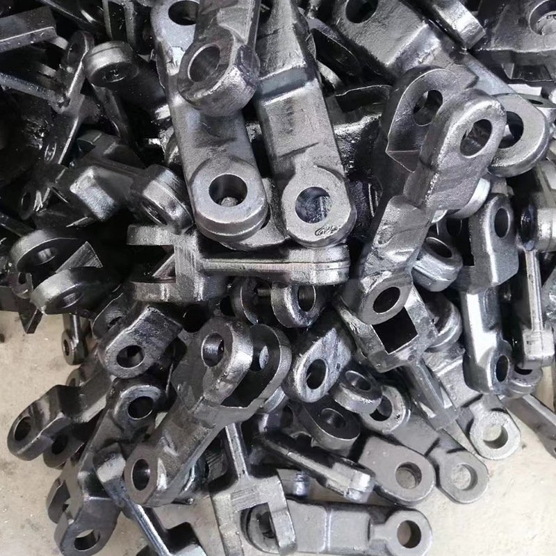 模锻链采用棒料锻造成型的一种可拆卸链条,它由链杆与销轴组成,链杆通过模锻或辊锻,再进行机加工制成,其链杆分为大头、小头和杆身三部分。此链条工艺特点是:在锻压过程中对材科的纤维组织有加强作用:且表面采用低碳台工艺金钢渗碳处理这样,既有较高的表面性能又有优良的综合机械性能,磨损质量轻、使用寿命长:它在与头轮轮齿啮合和在导轨上运行时是滑动摩擦。