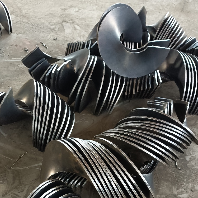 螺旋叶片的常用材质:碳钢、锰钢、不锈钢、耐磨钢等。   螺旋叶片的产品规格:根据客户任意需求定制,连续轧制的连续等厚螺旋叶片带度80mm以下,大带宽连续等厚螺旋叶片直径1500mm,厚度40mm。   螺旋叶片的产品用途:适用于矿山、化工、农业、环保及建筑桩基工程等各种行业。   螺旋叶片的加工范围:   内孔大于20mm边宽小于150mm厚度3-40mm。