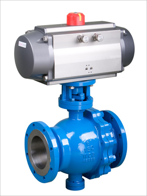 固定球气动球阀的球体是固定的,受压后不产生移动。固定球球阀都带有浮动阀座,受介质压力后,阀座产生移动,使密封圈紧压在球体上,以保证密封。通常在与球体的上、下轴上装有轴承,操作扭距小,适用于高压和大口径的阀门。为了减少气动球阀的操作扭矩和增加密封的可靠程度,近年来又出现了油封球阀,既在密封面间压注特制的润滑油,以形成一层油膜,即增强了密封性,又减少了操作扭矩,更适用高压大口径的球阀。