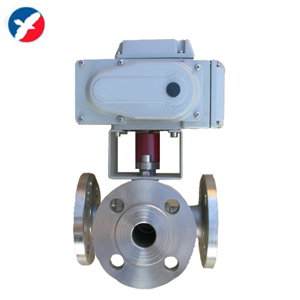 电动法兰三通球阀采用JW系列回转式角行程电动执行机构,以AC220VAC380VDC24V电源电压作动力,接受工业自动化仪表控制系统输入的(4-20mA、或1-5VDC)电流信号或电压信号,即可控制运转,实现对工艺介质的比例调节或二位切换控制。三通球阀是综合国内外先进技术而开发的新型三通切换型调节阀。标准球芯有L型三通双口孔种,改变球芯与管道的相对角度,可以对三支管道流体实现不同的组合控制;T型孔道可起配比作用,适用于液休、气体、蒸汽等介质的配比调节与控制。