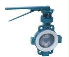 全衬氟蝶阀是用圆盘式启闭件往复回转90度左右来开启、关闭和调节流体通道 的一种阀门。全衬氟蝶阀不仅结构简单、体积小、重量轻、材料耗用省,安装尺寸小,而且驱动力矩小,操作简便、迅速,并且还可同时具有良好的流量凋节功能和关闭密封特性,是近十几年来发展*快的阀门品种之一。