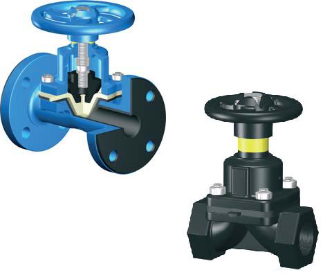 阀体内腔表面无衬里或覆有可供选择的各种橡胶,适用 适用于不同工作温度和流体管路。 适用温度:≤85℃、≤100℃、≤120℃ ≤150℃按照衬里和隔膜材料