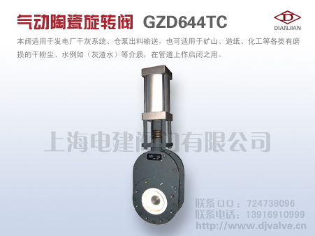 一、 GZD644TC气动陶瓷旋转阀用途: