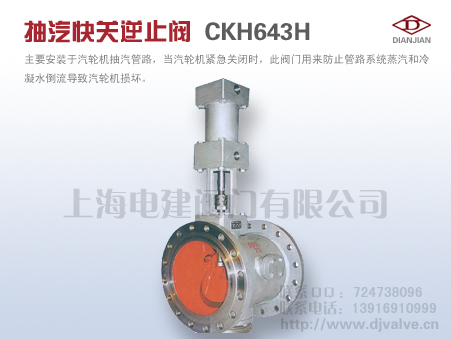 该系列产品主要用在600MW以下火力发电汽轮机抽汽系统,防止介质或水倒流,对汽轮机水泵等重要设施起到保护作用。其性能要求为在管道介质倒流、断电、事故等非常状态下,该阀门瞬间关闭,关闭时间小于0.5秒。
