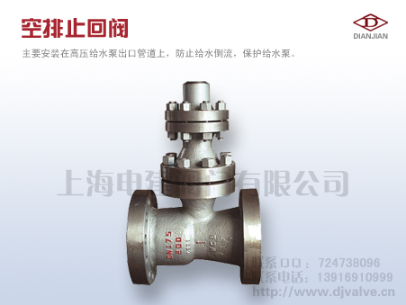 空排止回阀,主要用于火电厂给水泵出口处。配合水泵*小流量再循环阀工作,维持系统的安全运行。