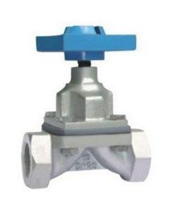 上工牌隔膜阀在阀体和阀盖内装有一挠性隔膜或组合隔膜,其关闭件是与隔膜相连接的一种压缩装置。阀座可以是堰形,也可以是直通流道的管壁。隔膜阀的优点是其操纵机构与介质通路隔开,不但保证了工作介质的纯净,同时也防止管路中介质冲击操纵机构工作部件的可能性。此外,阀杆处不需要采用任何形式的单独密封,除非在控制有害介质中作为安全设施使用。隔膜阀中,由于工作介质接触的仅仅是隔膜和阀体,二者均可以采用多种不同的材料,因此该阀能理想地控制多种工作介质,尤其适合带有化学腐蚀性或悬浮颗粒的介质。隔膜阀的工作温度通常受隔膜和阀体衬里所使用材料的限制,它的工作温度范围大约为-50~175℃。隔膜阀结构简单,只由阀体、隔膜和阀盖组合件三个主要部件构成。