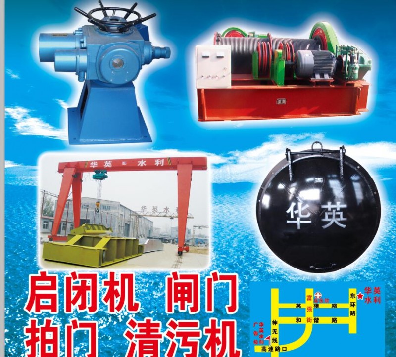 河北省邢台市华英水利机械厂位于中国机械产业基地邢台新河县,集设计、生产、销售为一体, 地理位置优越,交通便利。邢台市华英水利机械厂是国家水利定点生产水利启闭机、闸门的专业厂家,是集产品研发、生产、销售及售后服务于一体的生产经营型企业。 主要产品有:LQS系列(手动)螺杆式启闭机、LQD(电动)系列螺杆式启闭机;QPQ、QPG、QPK、QH系列卷扬式启闭机;PGZ系列拱形铸铁闸门;SPZM系列双向止水平板铸铁闸门;MXF系列镶铜铸铁方闸门;MXY系列镶铜铸铁圆闸门;PM系列拍门;CQ系列清污机;堰门系列;钢板闸门系列;FZPM系列折叠拍门;橡胶止水系列等等水利机械产品。华英启闭机汇责任于品质,华英闸门三十年品质如一。