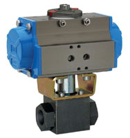 气动三通螺纹球阀气动三通螺纹球阀分L型和T型。L型三通球阀适用于介质流向的切换,能使相互垂直的两个通道连通:T型三通球阀适用