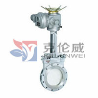 PZ973H/F/Y电动刀型闸阀概述PZ973H/F/Y电动刀型闸阀是电动驱动、对夹式连接、明杆平行式刚性单闸板,阀座密封面为硬质合金与聚四