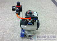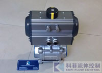 L型管道流向换向用气动三通球阀Pneumatic Three ball valveKFF科菲气动三通球阀有T型和L型。T型能使三条正交的管道相互联通和切