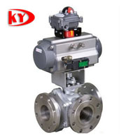 三通气动球阀结构特点和应用范围L(T)形气动球阀是由气动执行机构和三通阀组成,是一种旋转类切断调节阀门,具有关闭严密,结构