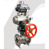 名称:气动V型不锈钢球阀 型号:V型 口径:DN15-500 压力:1.0Mpa-10Mpa 材质:不锈钢,碳钢,铸钢 气动V型调节球阀由气动活塞式