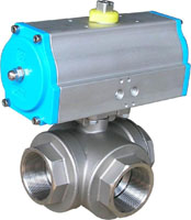 气动三通球阀Q614F Q615F概述气动三通螺纹球阀分为三通L型球阀、三通T型球阀,三通球阀是一种三通道的回转型球阀,O型三通球阀的