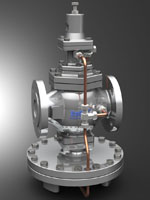 描述外部先导薄膜式减压阀类似于内置导引驱动活塞的阀门,但用膜片代替了活塞。这样就增大了隔板的面积,故可以打开更大的主阀。