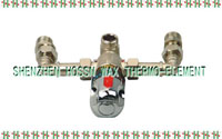- 工作原理:在恒温混水阀的混合出水口处,装有一个热敏元件,利用感温原件的特性推动阀体内阀芯移动,封堵或者开启冷、热水的进水