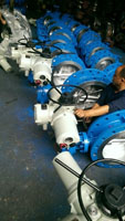 对焊蝶阀的蝶板安装于管道的直径方向。在蝶阀阀体圆柱形通道内,圆盘形蝶板绕着轴线旋转,旋转角度为0-90之间,旋转到90时,阀门
