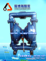 QBY-80/100铸铁气动隔膜泵工作原理:QBY气动隔膜泵既能抽送流动的液体,又能输送一些不易流动的介质,具有自吸泵、潜水泵、屏蔽