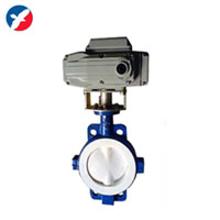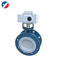 D941F46电动衬氟法兰蝶阀概述电动衬氟法兰蝶阀是用阀杆一起转动的蝶板作启闭件,用以实现阀门的开启,关闭与调节。电动衬氟蝶阀是