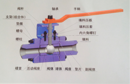 此结构简单,高效,当阀门需要检修时,仅需在线将阀体与副阀体相连的螺栓卸下后,即可将中间阀体连同其内部的部件整体取出,将内部的阀座,球体更换后,重新装回,即完成在线检修。