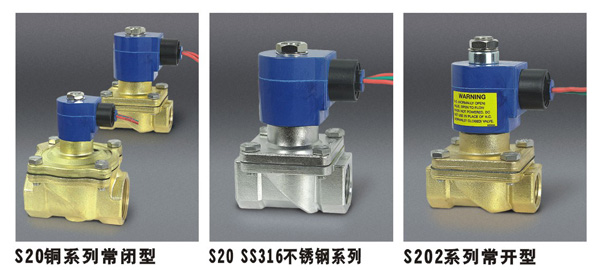 S20系列两位两通先导式膜片型电磁阀能在零压差下工作。此系列电磁阀适用于0 kgf/cm2到1 3.79kgf/cm2 的压力范围。S20系列电磁阀提供多种不同的膜片和阀体材质,以适应不同流体的开关控制。如有特殊要求,请与GC公司中国总代理三力信电磁阀公司客户服务部联系。