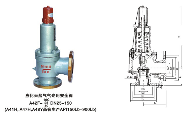A42F型安全阀适用于工作温度≤+80℃的天然气、液化石油气、氨气、液体等介质的设备或管路上。A42F46型适用于工作有腐蚀性介质的设备或管路上,作为超压保护装置。