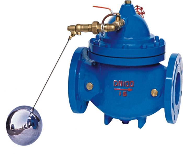 100X隔膜式遥控浮球阀是兼具多种功能的水力操作式阀门。主要安装于水池或高架水塔的进水口处,当水位达到设定的高度时,主阀由浮球控制关闭进水口停止供水;当水位下降后,主阀由浮球开关控制打开进水口向水池注水,实现自动补水。液位控制精确,不受水压干扰;100X隔膜式遥控浮球阀可随水池的高度及使用空间任意位置安装、维护、调试、检查方便、密封可靠,使用寿命长。隔膜式阀门性能可靠、强度高、动作灵活适用于450mm口径以下的管道。DN50mm口径以上的建议使用活塞式。