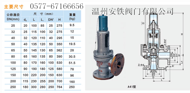 A41H弹簧微启封闭式安全阀适用于工作温度≤300℃的石油气、空气、水等介质的设备或管路上。