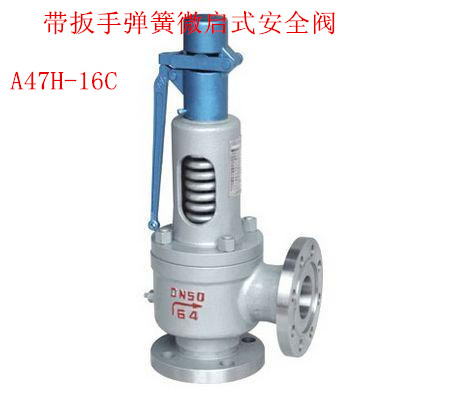 A47H带扳手弹簧微启式安全阀适用于工作温度≤350℃的蒸汽、空气等介质的设备或管路上。作为超压保护装置。连