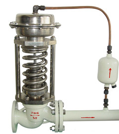 自动式压力调节阀无需外加能源,利用被调介质自身能量为动力源,引入执行机构控制阀芯位置,改变两端的压差和流量,使阀前(或阀后)压力稳定。具有动作灵敏,密封性好,压力设定点波动小等优点,广泛应用于气体、液体及蒸汽介质减压稳压或泄压稳压的自动控制。