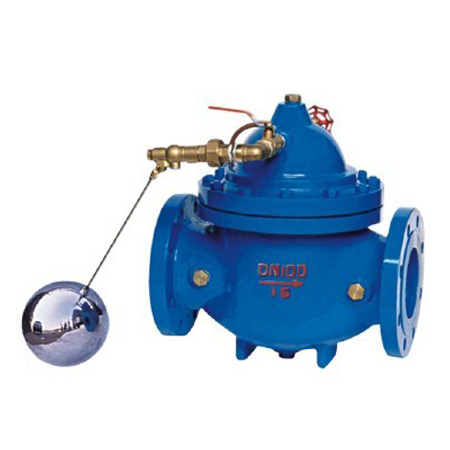 100X遥控浮球阀是兼具多种功能的水力操作式阀门。主要安装在水池或高架水塔的进水口处,当水位达到设定的高度时,主阀由浮球导阀控制关闭进水口停止供水;当水位下降后,主阀由浮球阀开关控制打开进水口向水池注水,实现自动补水。液位控制精确,不受水压干扰;100X遥控浮球阀可随水池安装的位置及使用空间任意安装、维护、调试、检查方便、密封可靠,使用寿命长。隔膜式阀门性能可靠,强度高,动作灵活适用于450口径以下的管道,DN500mm以上的建议适用活塞式。