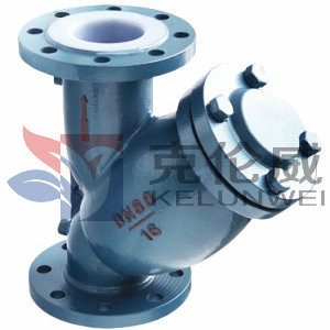 衬氟Y型过滤器是用来清除腐蚀性介质中的杂质,保护泵、阀门及其它设备的正常使用。一般通水网为20-60目/cm2,通气网为40-100目/cm2通油网为100-480目/cm2。可根据介质相应配置。由于过滤器内壁及滤网均采用耐腐蚀性极强的四氟制成,因此该产品被广泛应用于各种腐蚀性管路中。