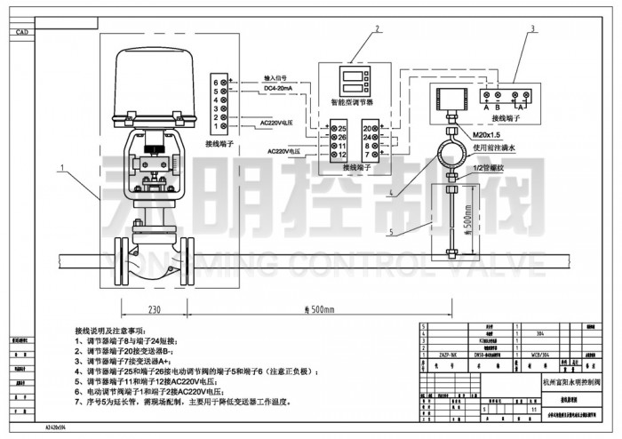 下图为DN50分体式智能型自反馈高精度电动压力调压调节阀接线原理图: