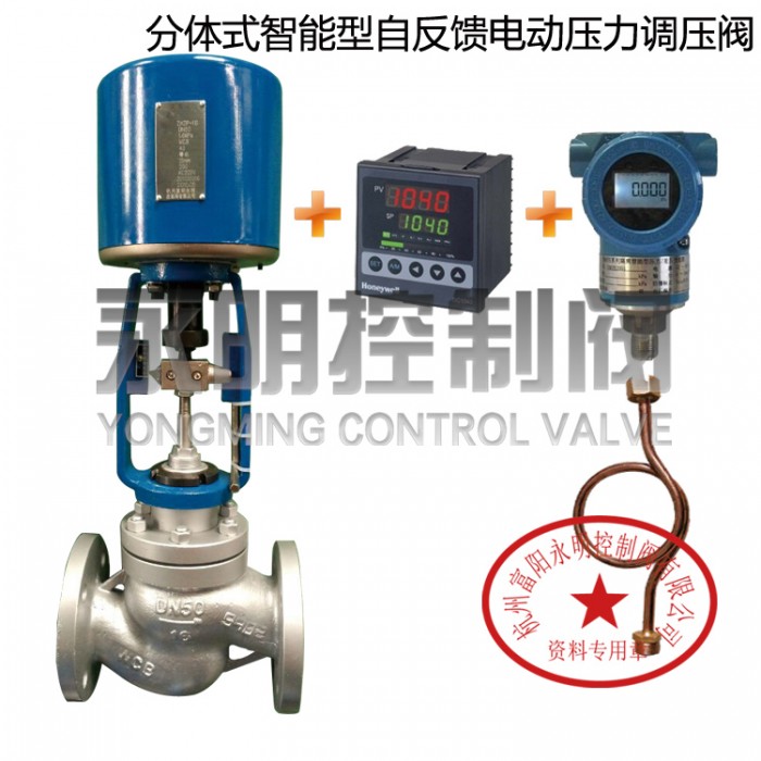 ZAZP分体式压力调压阀采用电动单座调节阀(或防爆型电动调节阀)+温控器+智能型压力变送器及3芯屏蔽线等附件组成,具有高控制精度,可达±0.2%的控制精度,调节性能及控制精度远超过常规自力式(蒸汽)减压阀。