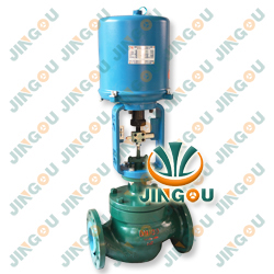 JINGOU公司生产的电动套筒调节阀是一种高性能的电动调节阀,适用于各种不同压力和温度的流体和对泄漏要求不严格场合。电动套筒调节阀是由阀体、阀座、套筒、阀芯、导向套、阀盖及密封填料与电动执行器经配合后组成。电动套筒调节阀通过接收工业自动化控制系统的信号(如:4~20mA或1~5V)来驱动阀门改变阀芯和阀座之间的截面积大小控制管道介质的流量、温度、压力等工艺参数,实现自动化调节功能。电动套筒调节阀流体通道成S型,压降损失小,流量大,流量特性精度高,可调范围广。电动套筒调节阀具有动作灵敏、连线简单、流量大、体积小、调节精度高等特点。电动套筒调节阀广泛应用于电力、冶金、石油、化工、医药、锅炉、轻工等行业的自动控制系统中。